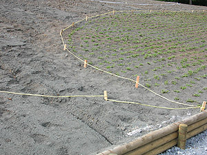 土壌改良を行った場所には、次の春、皆さんに「芝桜の丘」の新しい一面をご覧いただくため、基本のデザインをふまえながらデザインの修正を行います。