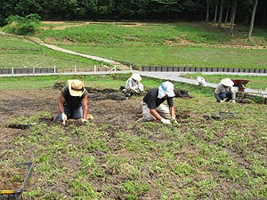 皆さんにより美しい花を観賞していただけるよう、花が終わってから秋の間に植栽地の土壌改良(植栽地を4分割し、ローテーションを組んでいます。)を行い、芝桜の生育にとってよりよい土づくり、環境づくりを目指しています。